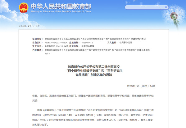 8月20日,第二批全国高校“百个研究生样板党支部”和“百名研究生党员标兵”创建工作评审结果公布。新葡的京集团博士第一党支部入选第二批全国高校“百个研究生样板党支部”。这是继新葡的京集团博士研究生李双德入选全国首批高校“百名研究生党员标兵”后,学院党建又一个标志性成果。新葡的京集团也是全国为数不多同时入选“百个研究生样板党支部”和“百名研究生党员标兵”创建名单的学院。