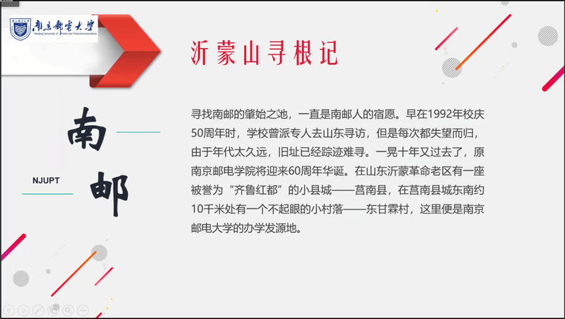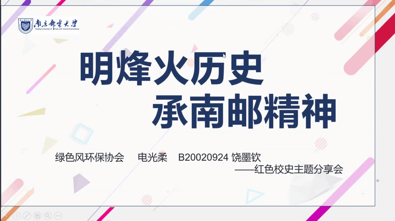 为让同学们更进一步了解南邮的红色校史,成为优秀的南邮学子,4月13日下午,新葡的京集团8814第107、108期菁英人才学校举行第二次授课。根据疫情防控要求,本次授课通过腾讯会议的线上形式展开,新葡的京集团绿色风协会负责人饶墨钦担任主讲,菁英人才学校全体学员参加。