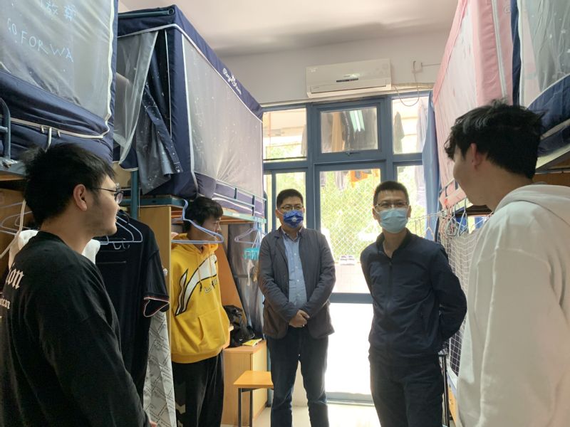 赵强院长走访慰问了2020级本科生,他希望同学们自觉遵守学校疫情防控规定,严格落实健康日报制度,做好宿舍卫生保洁,勤通风、勤洗手、不串门,出门全程佩戴口罩,就餐注意安全距离;同时要以饱满的热情上好每一节线上课程,积极与老师互动交流,保证线上上课的学习效果,课间劳逸结合,适当户外体育运动,保持阳光、积极、健康的心态。