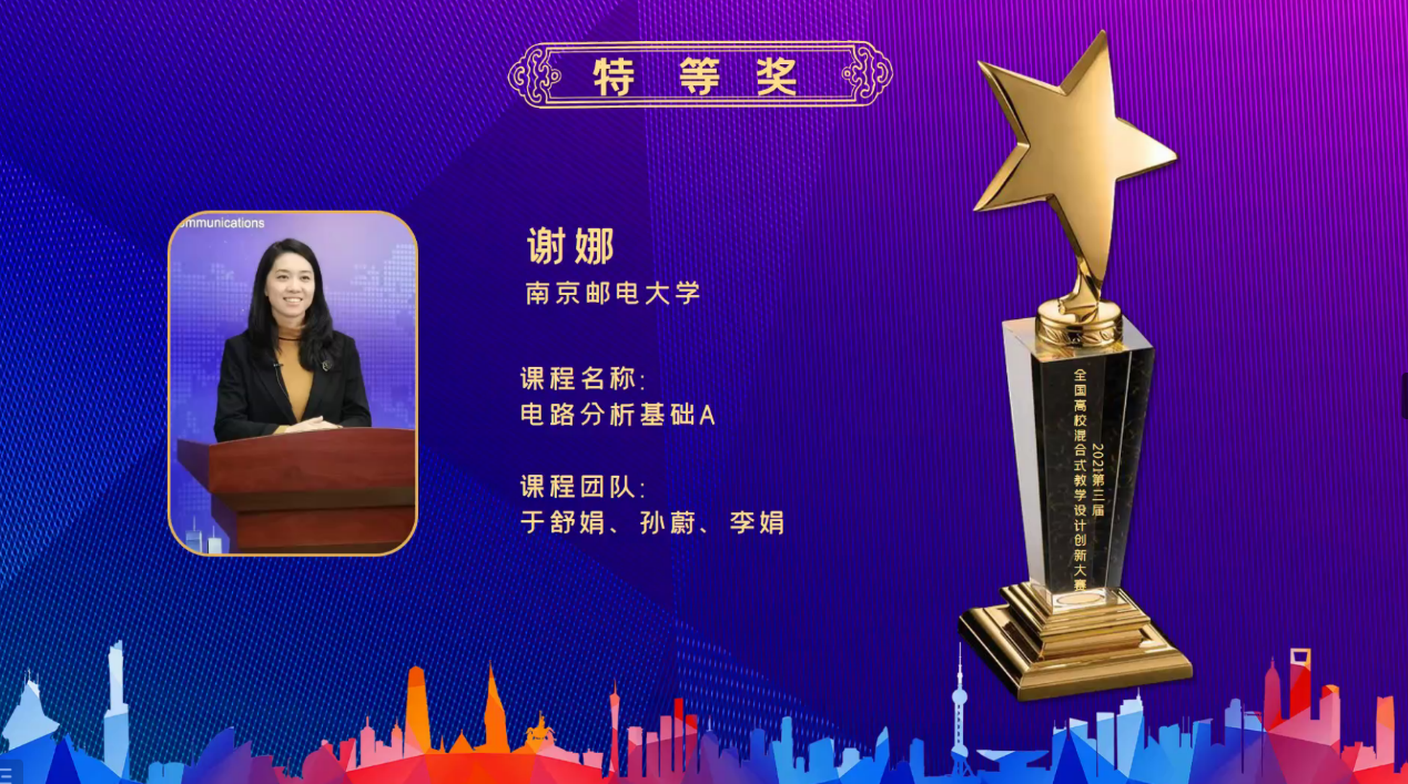 2021年6月年第三届全国高校混合式教学设计创新大赛启动,此次大赛由上海交通大学、北京大学主办,高校教学发展网络(CHED)、上海市高等教育学会和清华大学、浙江大学、中国科技大学、西安交通大学、哈尔滨工业大学等15所高校协办。大赛分为初赛、复赛、决赛三个阶段,共有来自北京大学、清华大学、上海交通大学等全国157所高校的401个作品参赛,决赛产生特等奖5项、一等奖10项、二等奖15项。新葡的京集团谢娜老师课程团队一路过关斩将,最终荣获大赛特等奖的好成绩。该项赛事已纳入中国高等教育学会《全国普通高校教师教学竞赛分析报告》和《全国普通高校教师教学发展指数》数据统计源,是衡量高校教师教学发展生态的重要指标之一。