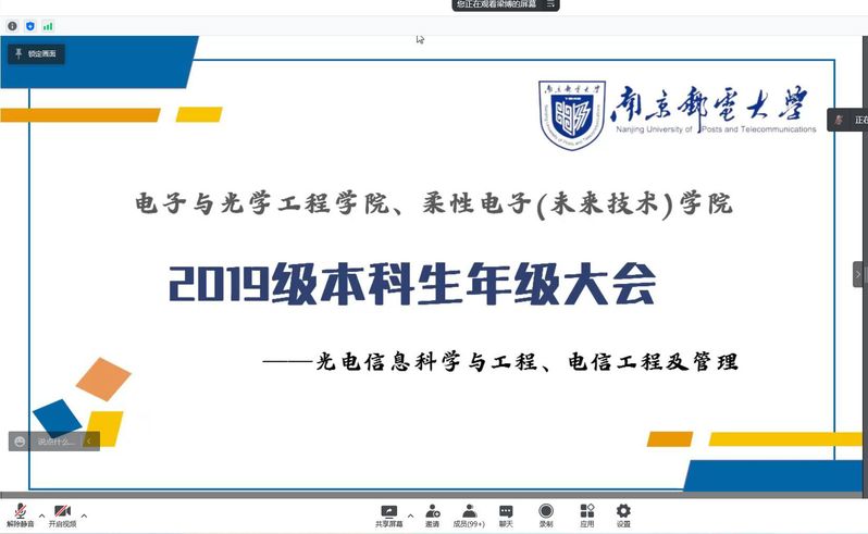 为帮助即将步入大四学年的同学们更好地了解考研、就业形势,规划好未来道路,调整好学习生活状态,引导同学们以正确的态度面对考试,做到以诚为本,实事求是。6月11日,电子与光学工程学院、柔性电子(未来技术)学院2019级光电信息科学与工程、电信工程及管理专业开展“辅导员面对面”评议暨诚信考试主题大会,本次会议线上进行,由2019级辅导员祝腾老师和梁博老师主讲,2019级光电、电管专业全体同学参会。