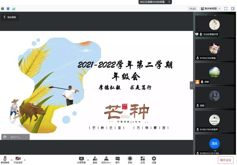 祝腾老师首先从辅导员日常工作对本学期工作进行总结。她肯定了全体同学本学期以来严格配合遵守学校新冠肺炎疫情防控规定的表现,勉励同学们在今后的时间内再接再厉。接着,祝老师帮助大家分析就业及考研相关注意事项,希望大家根据搜集的信息多做分析和考量。此外,祝老师祝愿所有的同学在即将到来的期末考试和未来的考研、求职中获得佳绩。