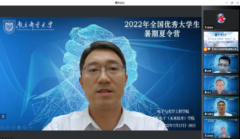 开营仪式召开之前,班主任祝腾和梁博老师分别召开了夏令营班级班会,带领所有学员观看了学院的相关介绍视频,破冰之旅不仅加深了小组和班级同学间的了解,同时也展现了当代大学生的青春魅力。随后,夏令营开营仪式正式举行,仪式由电子与光学工程学院、柔性电子未来技术学院副院长李卫教授主持,学院党委书记毛建平书记、院长赵强教授出席了会议,李培丽教授、李波教授、辅导员祝腾老师、梁博老师、强增寿老师参加了开营仪式。毛书记代表学院全体师生对此次入选全国优秀大学生暑期夏令营的全体同学表示欢迎和祝贺,并预祝学院本次夏令营活动取得圆满成功。赵强院长则从新葡的京集团、学科介绍、人才培养、招考信息等方面对学院进行了介绍,欢迎和鼓励全国优秀的大学生选择报考新葡的京集团8814。