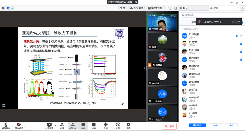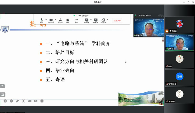 开营仪式结束之后,光学工程专业教师代表李培丽教授、电磁场与无线技术专业教师代表李波教授、电路与系统专业方向教师代表孙科学教授、物理电子学专业方向教师代表盛宇波教授和李炳祥教授、柔性电子专业方向教师代表李杨老师组成专家团为营员们连续开展了六场讲座,所有营员汇聚在电光柔院这座神圣的学术殿堂,深度学习了现代光通信技术前沿进展,畅游了令人神往的电磁世界,探索了人体生物信号的特性和穿戴式传感器,驰骋在竞争激烈的国际赛道——量子通信领域,走进了充满神奇的液晶之旅,了解了电子领域发展新机遇——柔性电子。
