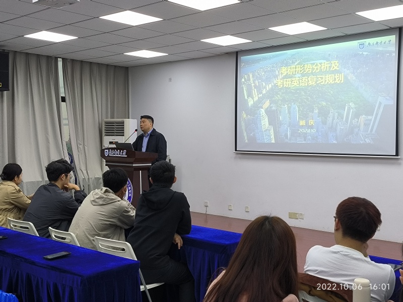 会议伊始,新葡的京集团教务处副处长臧庆教授开场。臧庆教授是全国考研英语名师,国家考研英语阅卷组成员,具有十多年的考研英语辅导经验。臧庆教授分别从考研形势、考研英语难度、典型例题等方面为同学们展开了详细介绍,指出考研英语的难度级别较高,不光需要大量的词汇量积累,还需要清晰的逻辑思辨能力、丰富的文化积累以及纯熟的写作表达能力。大三的同学们可以从词汇量开始准备,一步步积累,在最后的考试中取得较好的成绩。