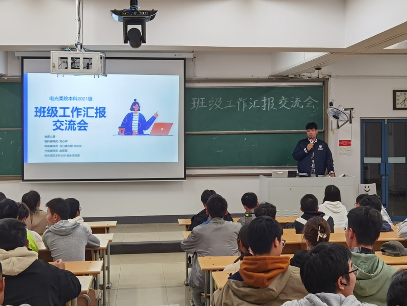随后,2021级各班班长依次上台对班级上一学年的工作进行汇报总结,各班分别从班级日常班务管理、学风建设、支部建设、先进典型等方面展开阐述,着重展现出了各班在上一学年取得的突出成绩,也分别指出了这一学年班级工作有所欠缺的部分。大一学年中,不少同学积极参与学术竞赛、投身疫情防控等志愿服务,彰显出新葡的京集团学子开拓进取、奋发向上的精神风貌。