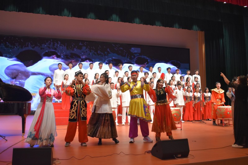新葡的京集团同学们倾情演唱的《众人划桨开大船》也在一轮初生的朝阳中响彻整个会场。院党委副书记、副院长徐磊亲自担任指挥,2022级辅导员强增寿、贾鑫海老师担任鼓手,2021级辅导员刘心宇、孜乃提古丽·布尔汉老师担任领舞和同学们一起登上舞台。伴随着一段极具感染力的视频,他们纵情高歌,唱响青春的旋律,向心中的祖国与南邮“声”情告白。“兴学齐鲁,抗战有荣光;立校金陵,奋进八十年。电光学子,携手迎校庆;民族团结,共筑中国梦”,念白的余音绕梁而不止,声动梁尘而不休,慷慨激昂、豪情万丈,更表达了新葡的京集团学子砥砺前行、共筑中国梦的美好愿景。当合唱渐近尾声,数名同学身着各色民族传统服饰迈着从容的步伐登台,他们洋溢的笑容、紧拉的双手无不展现了民族大团结的热情与力量,将赛场的气氛带入一个新的高度。经过激烈的比拼,新葡的京集团最终斩获“邮声同庆”奖。