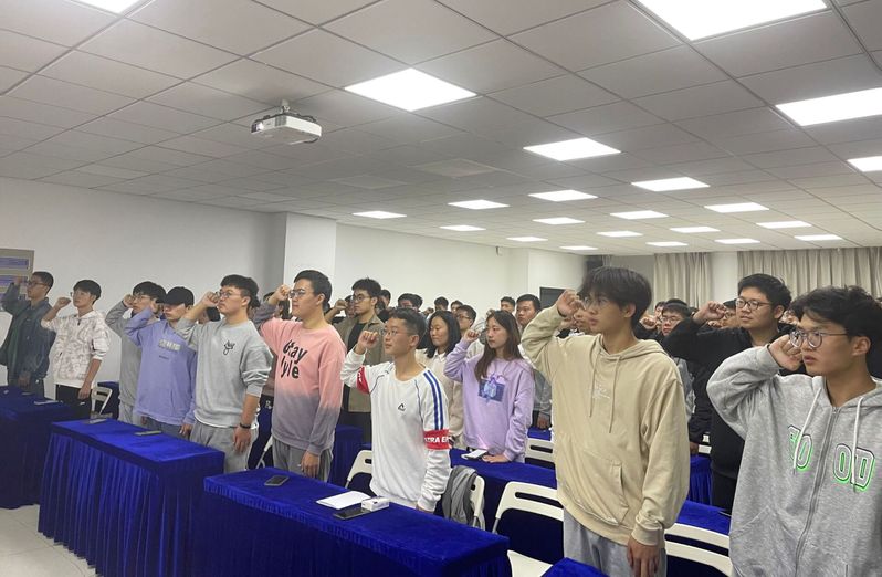 最后,进行班委宣誓。所有班委起立,右手握拳举至头侧,齐声宣誓,语气坚定,树立目标。整个会议在同学们热烈的掌声中拉下帷幕。