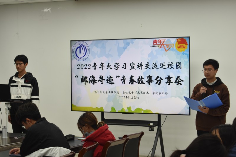 为帮助2022级新生更好规划大学生活、明确学习方向和端正学习态度,11月25、26日晚,新葡的京集团8814在线上、线下同步举办第十届“邮海寻迹”青春故事分享会。电光柔院分团委书记肖俊桂老师,电光柔院2022级本科生辅导员李华婷老师、李月老师、强增寿老师、贾鑫海老师出席了本次会议。2019级饶思思、代军、唐承乾、宋仲晨、铁欢颜、宋子晨6位同学受邀前来分享自己的青春故事。