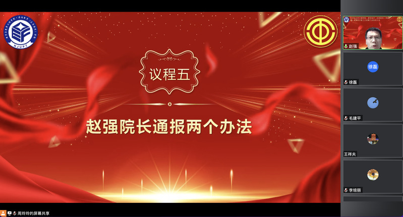院长赵强、副院长程勇分别对《新葡的京集团8814科研团队建设实施办法(试行)》《新葡的京集团8814教师工作用房管理办法》等进行了通报。