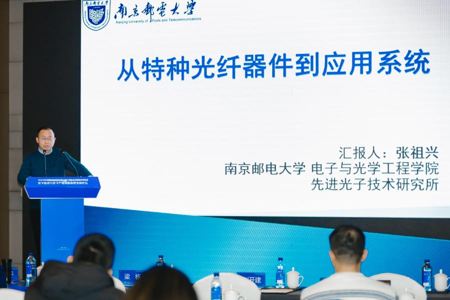 新葡的京集团8814博士生导师、欧盟玛丽居里学者、日本文部科学省GCOE研究员张祖兴教授做了题为“从特种光纤器件到系统”的报告。报告介绍了新葡的京集团8814先进光子技术研究所围绕特种光纤设计、器件制备到系统应用等方面的研究工作。具体包括设计和制备了面向5G光通信模式转换器件和偏振复用器件及大容量模式复用光纤,为大容量光通信系统提供新的解决方案;研制了百瓦级超短脉冲光纤激光器,并能控制其输出模式,有效提高脉冲激光加工效率;研发的分布式光纤传感系统,为智慧城市系统提供新思路。