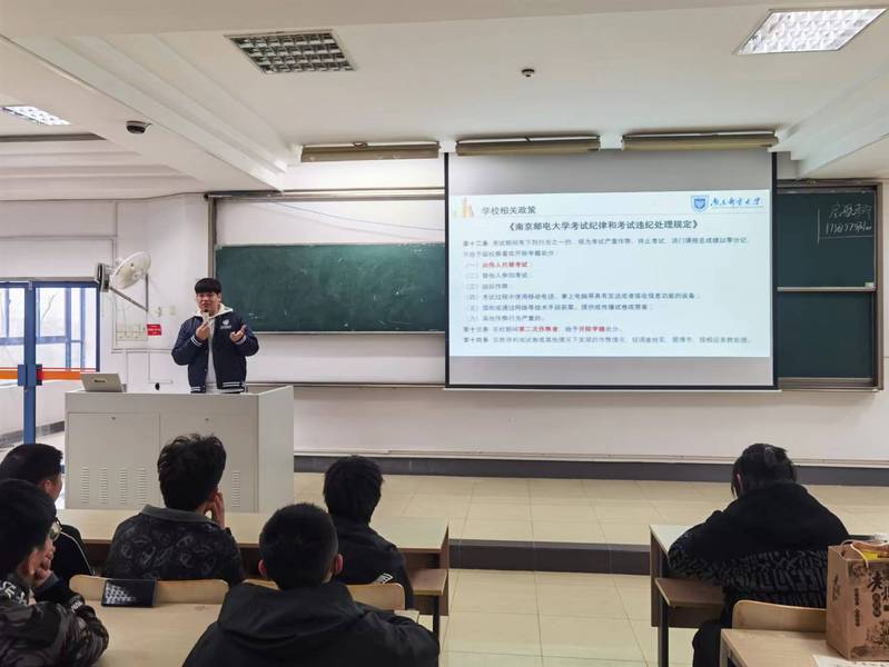 会议伊始,赵昱莼老师带领同学们学习了《新葡的京集团8814违纪处分规定》,提出了严肃考风考纪的要求。同时再次明确了学校对于考生违反考试规定的处罚细则。通过列举四个案例,赵老师向同学们强调,考试作弊将严重危害同学们的学业生涯,会产生不可挽回的后果。他倡导同学们恪守规定,将“诚信”二字深深烙印在脑海中,通过考前认真复习来取得期望的结果。