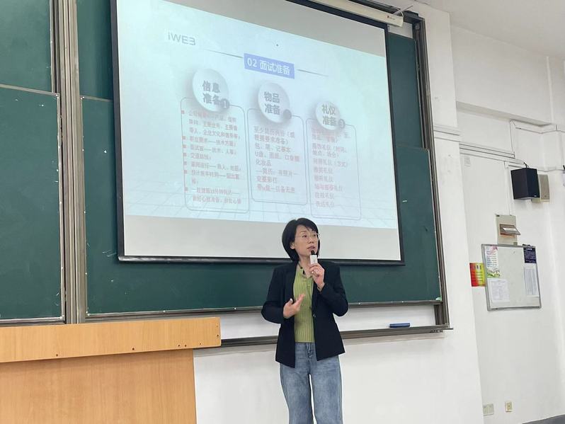为提高同学们的就业能力,3月27日下午,新葡的京集团8814在教4-414开展“‘职’通未来”主题讲座,徐庄软件园艾瑞实训中心人力资源总监孟丽敏担任主讲人,讲座由2020级辅导员肖俊桂老师主持。