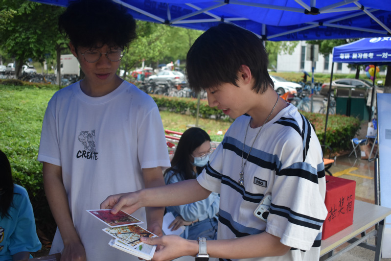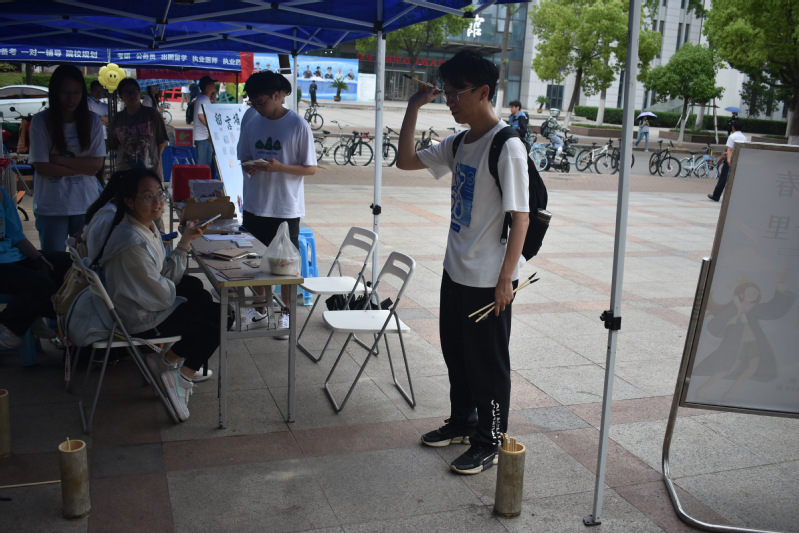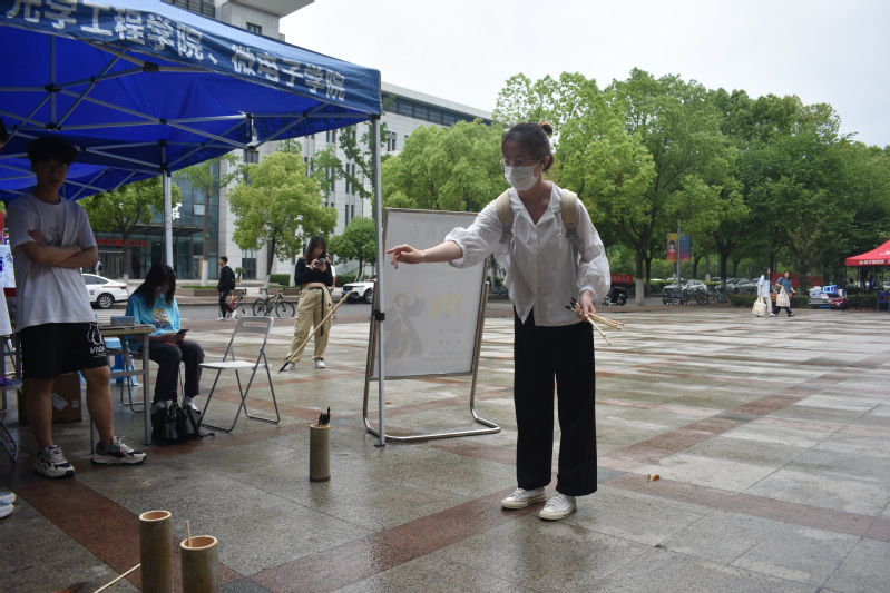 活动分时光胶囊、心愿墙许愿及投壶三个环节,当日空中飘着小雨,前来参与游戏的同学却是络绎不绝,阴翳天空之下,同学们一颗颗热情的心让现场满是暖意。