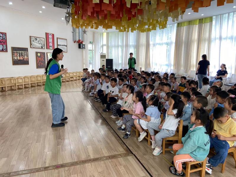 志愿者 “小白”老师通过动物的图片与声音来考验小朋友们对于动物的熟悉度,小朋友们积极踊跃地举手分享自己辨别出的动物。接下来白菜老师还对濒危动物与近危动物进行了讲解与科普,小朋友们认真听讲,表现真是太棒啦!