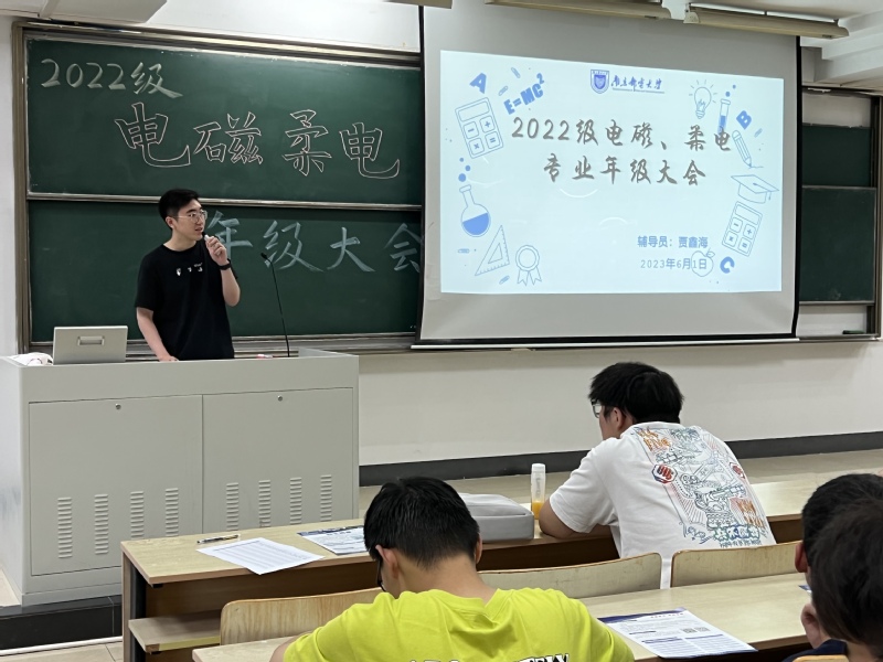 6月1日,新葡的京集团88142022级电磁场与无线技术专业、柔性电子学专业在教2-201召开“慎终如始,未来可期”主题年级大会,会议由辅导员贾鑫海老师主持,2022级电磁场与无线技术专业、柔性电子学专业全体同学参会。