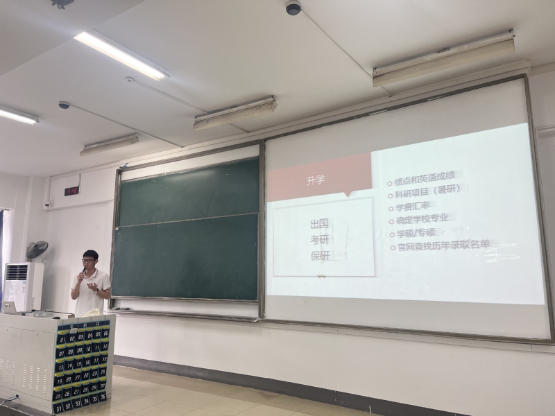 张泰来学长首先分享了自己的考研经验,他着重强调了时间安排的重要性和目标院校确定的合理性。同时,学长还从初试、面试两大方面分享了自己的宝贵经验,他建议避免将计划任务化,拒绝内耗和假努力。接着,张同学分享了如何提前准备出国留学,强调了语言成绩的重要性,如雅思、托福的考试,并分享了一些国家语言分数的要求,鼓励同学们好好对待学习,尽可能提高平均绩点。最后,张同学鼓励同学们在暑期要充实生活,积极参加暑期社会实践,做好暑期学习规划,劳逸结合,收获更好的自己。
