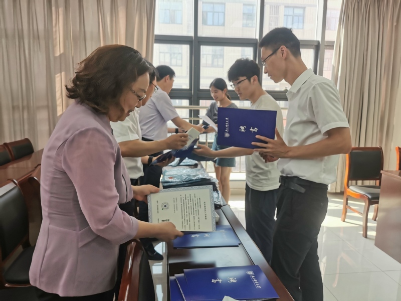 最后,与会老师向校友代表颁发了“2023届校友联络员聘书”,赠予大家定制的毕业纪念钥匙扣和学院文化衫,希望校友联络员们带着学院老师们的嘱托,肩负责任,勇于担当,在人生道路上不负众望,书写电光柔学院更辉煌的篇章。