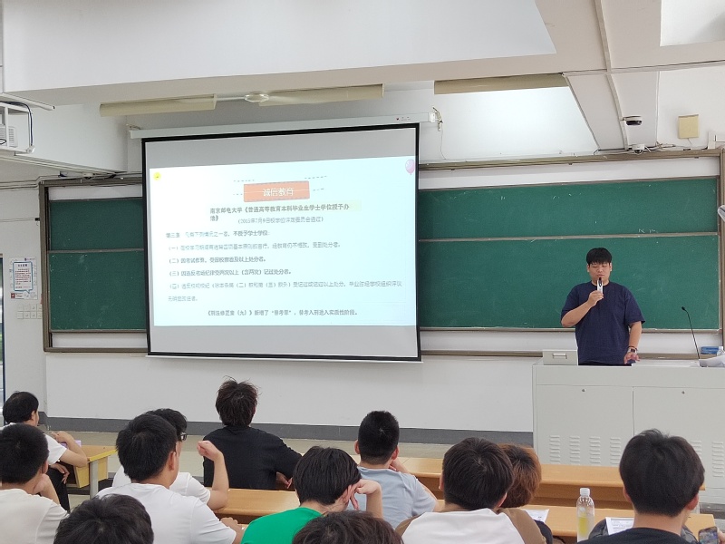 本次大会包含诚信教育、防范电信诈骗教育、本专业就业情况分析、考研情况分析等方面内容。大会伊始,赵昱莼老师向同学们讲解了新葡的京集团8814《普通高等教育本科毕业生学士学位授予办法》,再次向同学们说明了诚信考试的必要性,他强调,诚信为做人做事必须坚守的道德底线,作为一名大学生,应当真诚做人、守信做事,让诚信成为自身的的不懈追求和自觉行动。随后,赵老师列举了几种常见的电信诈骗类型,提醒同学们擦亮双眼、提高防范意识,注意保管好自己的个人财产。赵老师还向同学们列举了本届毕业生的考研数据和就业情况,剖析了当前的考研和就业形势,鼓舞同学们早日明确目标,朝梦想奋进。