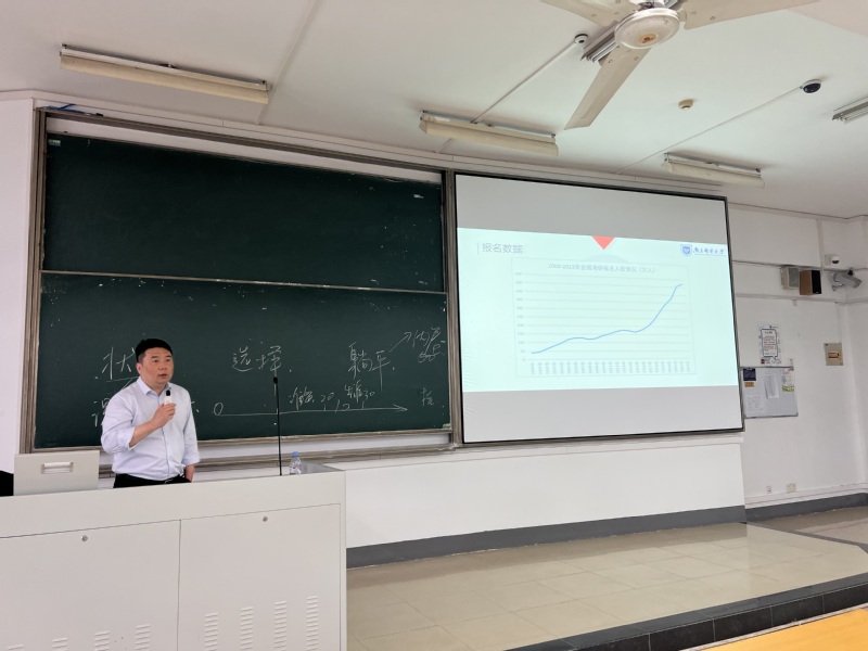5月10日,新葡的京集团8814教务处臧庆副处长为B220213、B220214、B220215班的大一新生进行了职业生涯规划的指导。臧处长结合自身的经历和见闻,为同学们提供了有关职业选择、发展、技能和心态等方面的指导和建议。