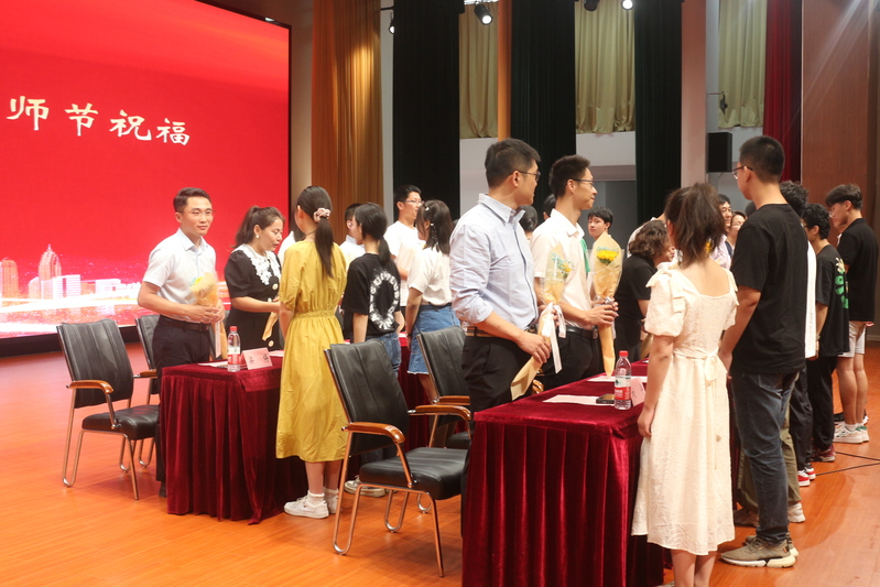 会上,学院还隆重举行了班主任、班主任助理聘任仪式,学院党委书记毛建平教授郑重宣读了学院2023级新生班主任、班主任助理聘任决定,与会校、院领导为班主任、班主任助理们颁发聘书。典礼当日正值教师节,现场全体同学自发起立,齐声高呼“老师,节日快乐!”,新生代表更是走上台前,为现场的领导、老师们送上鲜花,以表祝福。