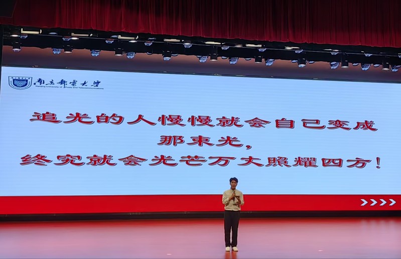 9月15日晚, 新葡的京集团8814电子与光学工程学院、柔性电子(未来技术) 学院在青春剧场举行2023级主题为“青柚逐梦,邮此启航”梦想公开课主题讲座。本次讲座邀请了马兴杰、刘显慧、邹同庆、张馨怡、雷蕾等五位优秀学生代表结合自身经历,切合实际、以点带面地为2023级新生指明大学期间努力的方向。新柚子们现场认真聆听。