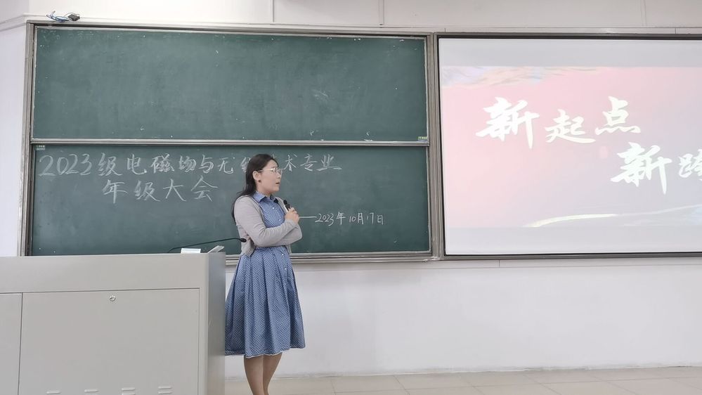 时序更替,梦想前行,千里之行,始于足下。10月17日下午,2023级电磁场与无线技术专业在教2-520召开年级大会,会议由孜乃提古丽·布尔汉老师主持,2023级电磁场与无线技术专业全体同学参加,本次会议从多方面对大学生涯进行了分析,以此激励全体同学明确目标、找准路径、一步一个脚印,以坚定的信念、崭新的姿态奋进。
