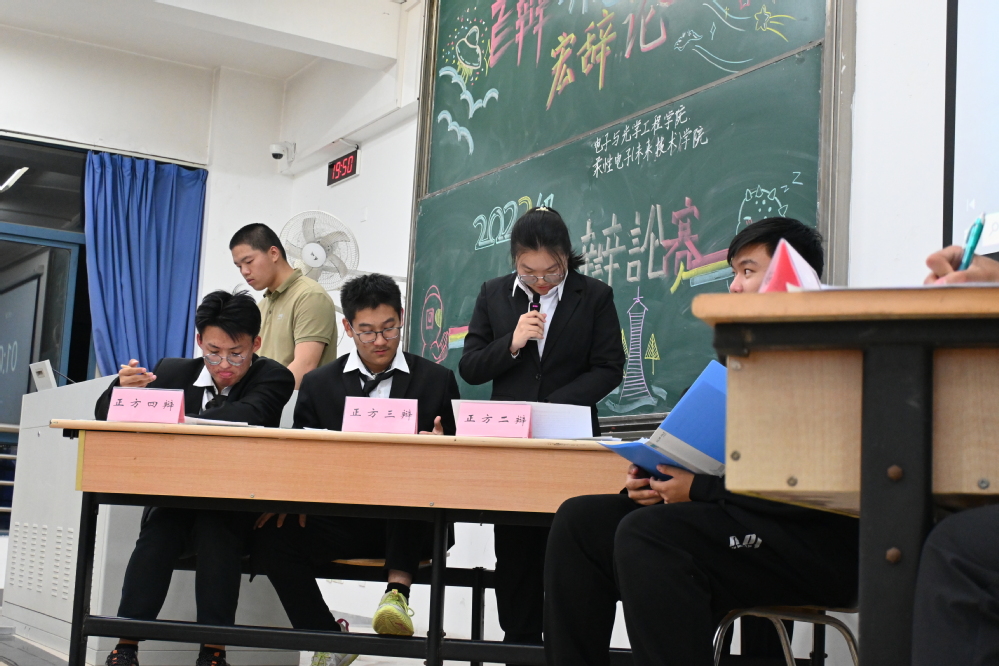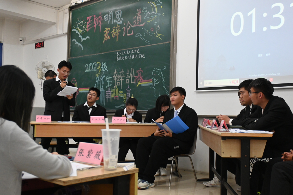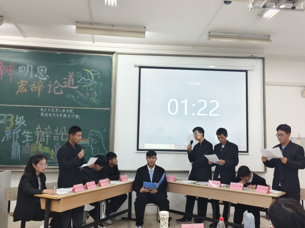 为培养同学们的逻辑思考能力、语言表达能力,更好的让2023届新生积极参与校园活动,近日,新葡的京集团8814在教三3-512举办了第七届“百辩明思,宏辞论道”新生辩论赛决赛。