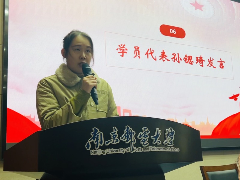 随后,班主任代表梁博老师发表讲话,提出青年应该珍惜韶华,不负青春,牢记习近平总书记的殷殷嘱托,立志向胜,立志向贤。随后,学员代表孙锶琦同学发言,提出我们应在担当中历练,在尽责中成长,乘时代长风,荡担当之桨,用“少年梦”托起“中国梦”。