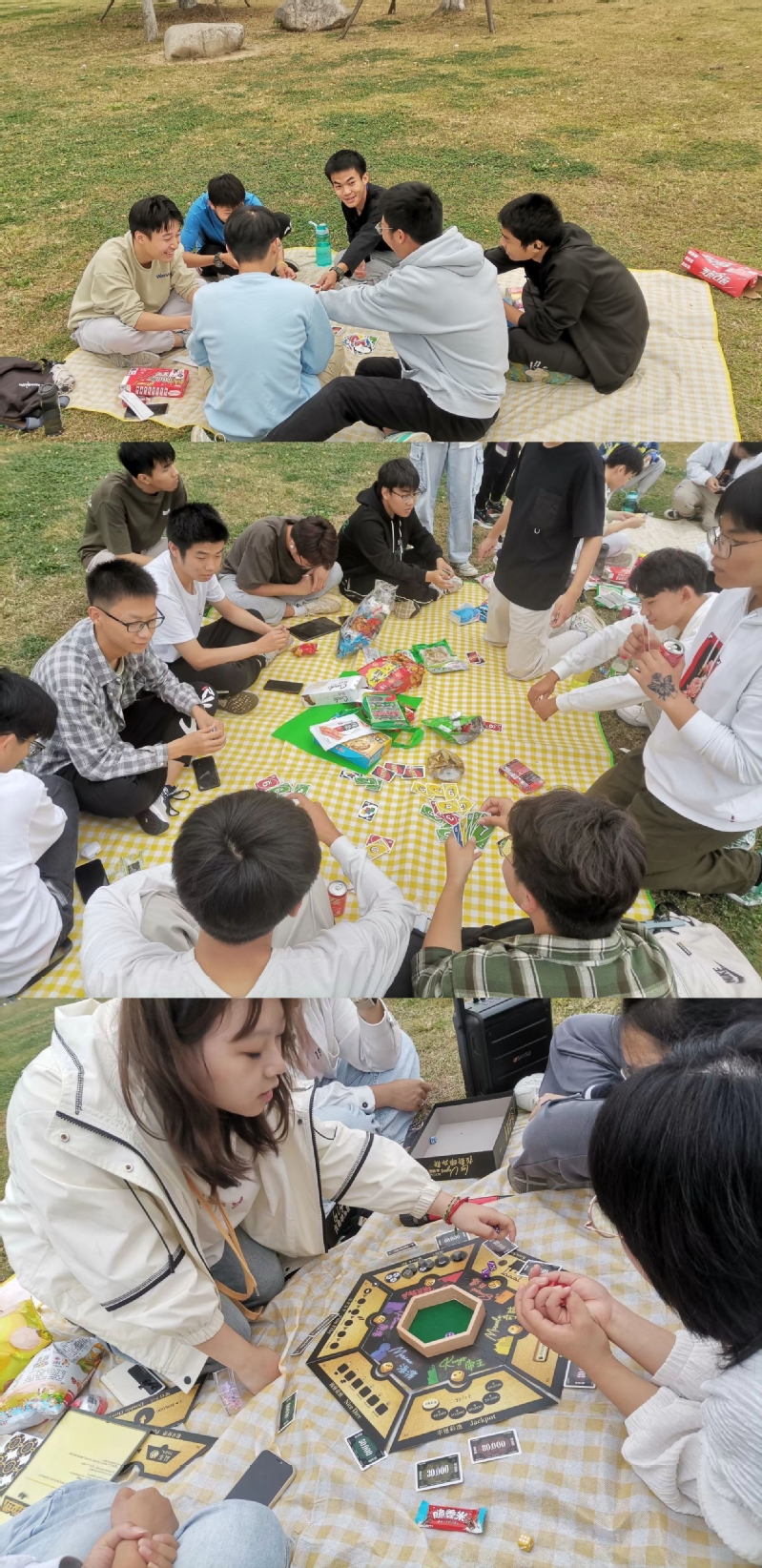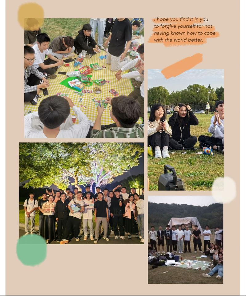 10月28日,B230210班同学们在仙林校区图书馆草坪上开展了本班团建活动,此次除了在芳草地野餐,还组织了“海龟汤”“数字炸弹”等游戏,同学们全情投入,热火朝天。此次活动不仅锻炼了同学们的逻辑思维能力,还增强了团队合作精神。