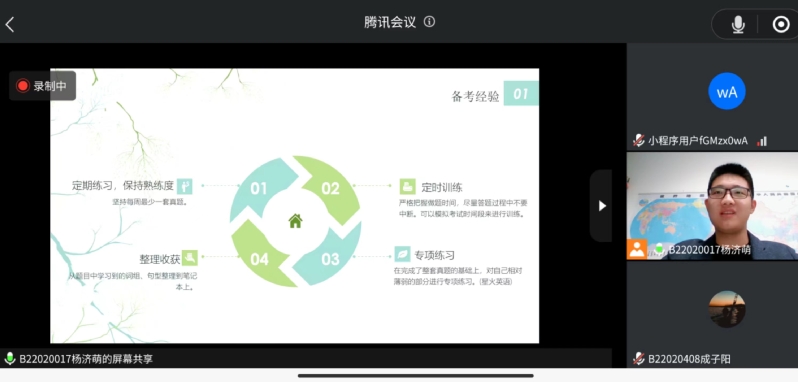 在分享结束之余,一位听众同学说:“杨济萌同学的分享让其受益匪浅,学到了很多新的备考方法和技巧。他的经验和见解非常有启发性,要坚持学习和实践,争取在六级考试中取得好成绩。”