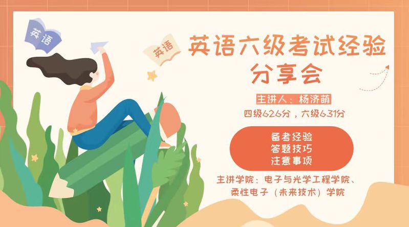 秋风送爽、叠翠流金,距离2023年冬季英语六级考试不足一月,为助力学生顺利取得英语等级证书,提高学生学习英语效率。11月23日电光柔学院2022级举办英语六级考试经验分享会,本次专题分享会嘉宾为2022级电子科学与技术(创新班)学生杨济萌。2022级参加六级考试的同学们、2023级部分同学参加了分享会。
