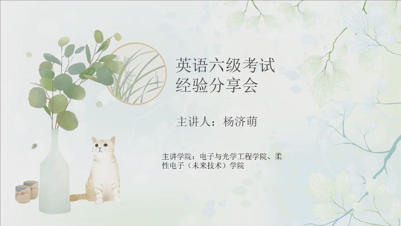 通过这次分享会,同学们不仅了解了六级考试的考点和难点,还收获了许多有用的应试技巧和策略。杨济萌同学以自己的实际经验为例,鼓舞大家坚持不懈地学习和提高自己的英语能力。相信电光柔学院的同学们一定能够在未来的英语学习和应试中更上一层楼!