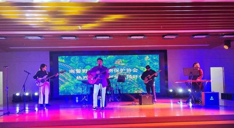 在南警食堂享用午餐之后,就是南警吉他社精彩绝伦的演奏啦。每位乐手都展示了自己高超的乐器使用能力,我们在场的所有人都为能够欣赏到如此动听的歌曲兴奋十足。演奏结束之后,南京警察学院的同学们向我们展示了他们的战术社。大家围在指导人员周围看着他演示包扎技巧,展示其它设施时,大家互相合作体验,绿色风环保协会成员们也积极互动。