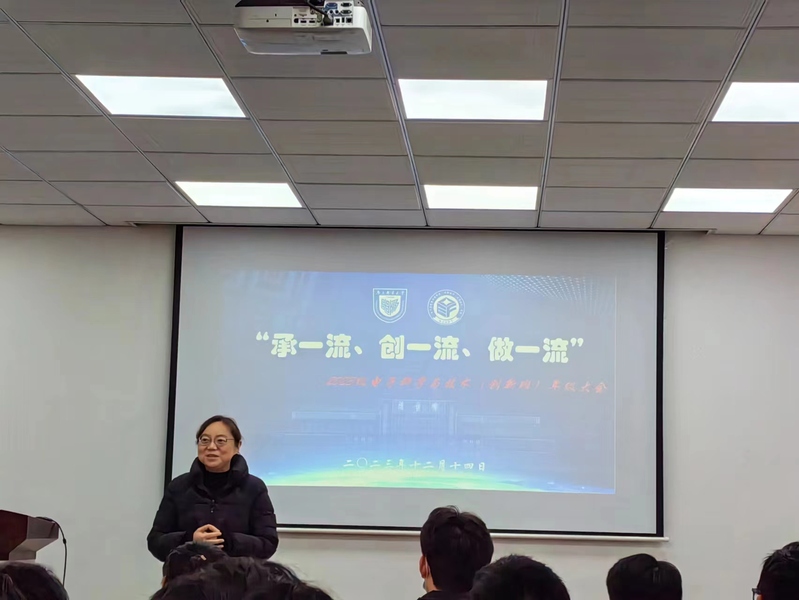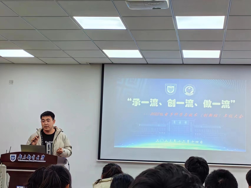 12月14日下午,新葡的京集团88142023级电子科学与技术(创新班)在电光楼B322召开了“承一流,创一流,做一流”主题班会暨年级大会。会议由辅导员强增寿老师主持,学院党委副书记、副院长徐磊,班主任王龙禄副教授参加了本次会议,会议还邀请了霍程阳、李梦竹、李静文、殷葳楠、孙宁五位优秀学长学姐进行学习和生涯经验分享。