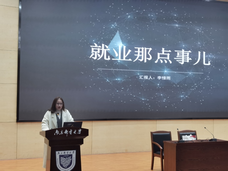 最后,江老师邀请本专业的李惜雨同学,就自己今年如何准备秋招,以及成功拿到心仪offer的经历进行分享,以及校友合作企业艾瑞的陈韩老师,就对当前的就业形势的分析,以及如何准备春招等内容进行了分享。
