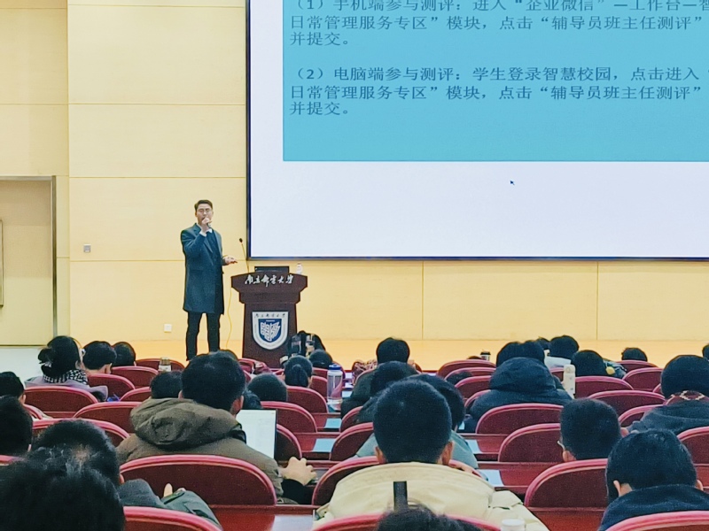 随后,刘老师就同学们生活和学习中遇到的诸多问题进行叮嘱。如叮嘱同学们关注财产安全,时刻谨防电信诈骗;严格遵守宿舍管理规定,共同营造一个舒适、安全的居住环境;针对文明上网教育,介绍了网络安全的常识,提醒同学们要合理利用网络资源,拒绝网络暴力,做到文明上网;提醒同学们假期离校要注意安全,合理安排行程,确保顺利度过假期;此外,辅导员还开展了面对面测评活动,从“热情、关爱、公平、互相理解”的理念予以述职,并详细了解同学们的需求和困惑,为他们提供个性化的指导和帮助。