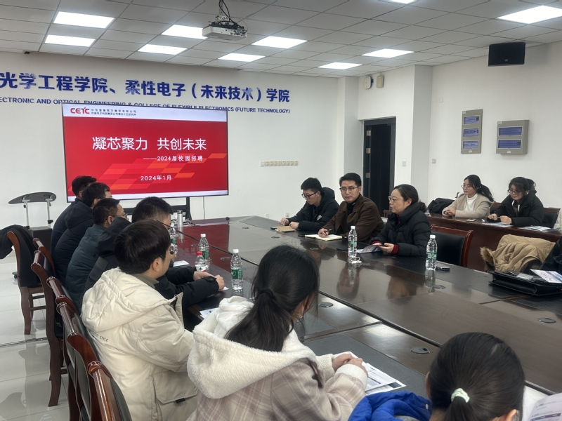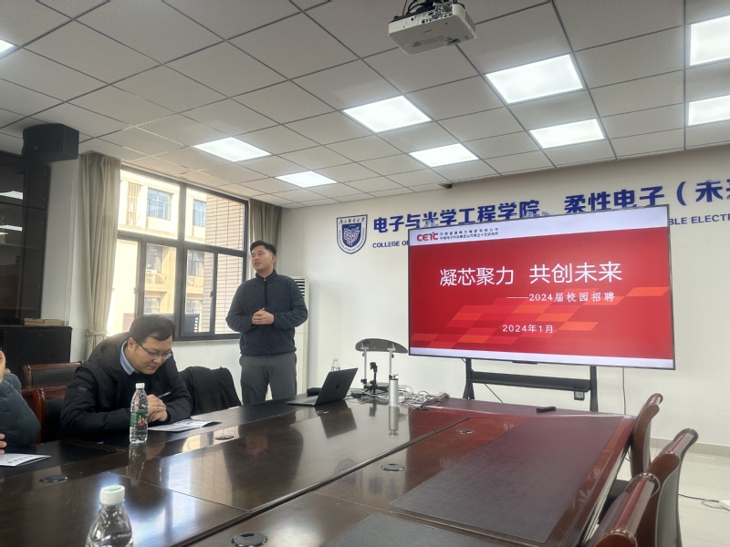1月10日下午,新葡的京集团8814在电光学科楼A327召开中国电科第五十五研究所本科生招聘宣讲会,本次宣讲会由中国电科第五十五研究所人资主管刘洋主讲,电光柔学院党委副书记、副院长徐磊、分团委书记肖俊桂、毕业班辅导员刘振、江重九,以及学院50多名2024届本科毕业生参会。