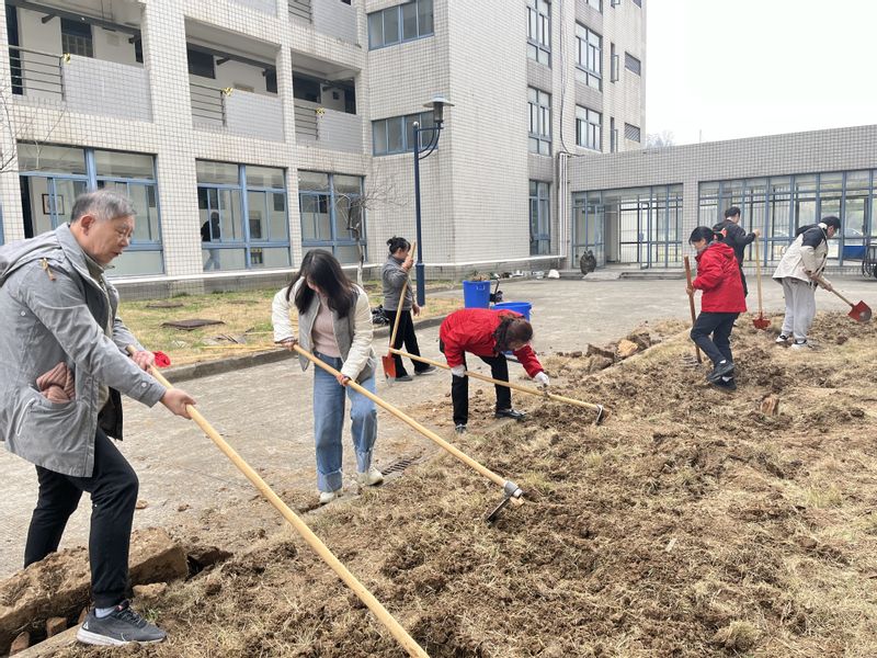 阳春三月,草长莺飞,为厚植生态文明理念,培养学生的劳动意识和崇尚劳动的精神,3月14日下午,在全国第46个植树节来临之际,新葡的京集团8814关工委老教师成谢锋、2022级辅导员老师们与学院多名青年学生一同前往桃苑宿舍,开展培植菜地劳动教育实践活动。