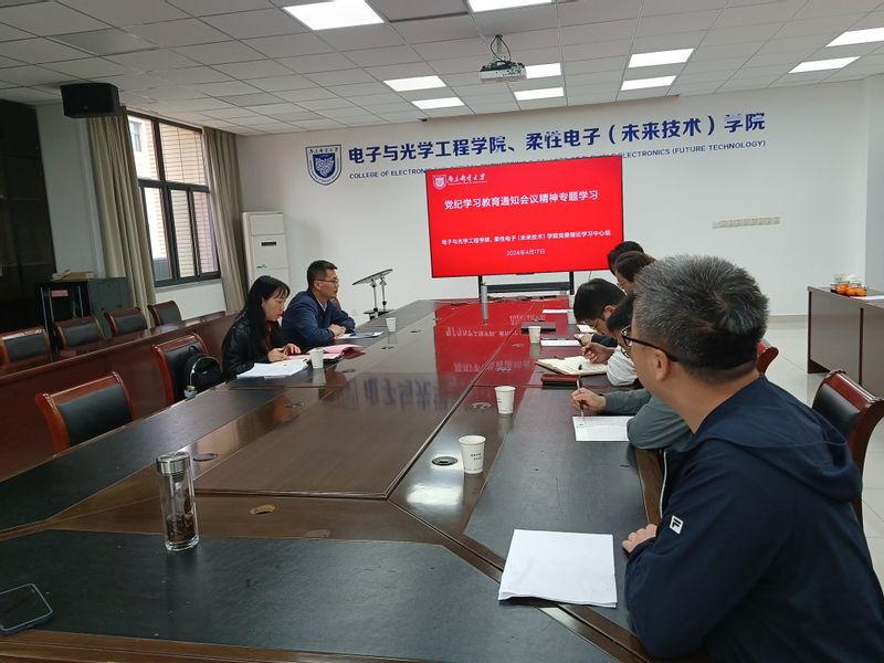 4月17日,电子与光学工程学院、柔性电子(未来技术)学院党委理论学习中心组专题学习党纪学习教育通知会议精神。党委书记黄丽亚主持学习会。