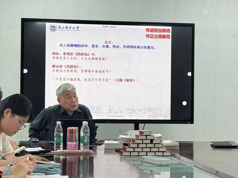 李雷教授讲课幽默风趣,用文理结合的思想带领大家走进诗词。他阐述了诗词与科研、与人生的紧密联系,叙述了诗词所具有的表达、反映、服务三大功能,指出学诗可以情飞扬、志高昂、人灵秀。李教授呼吁南邮人要能够从诗词中培养想象力,培养创新精神,为科技创新和社会发展贡献力量。