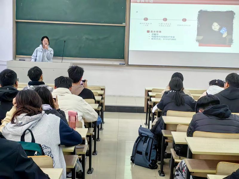 首先,吴馥宇学姐从自身经历入手,向同学们介绍了自己丰富的社会实践生活,分享了自己对社会实践的理解。学姐从院系、学校、社会三个层面出发,详细地介绍了相关实践活动的参与方式,如“青春南邮”、“创青春”、到梦空间等,填补了大一同学们的相关知识空缺。从个人、到学校、再到社会,学姐从多方面向同学们讲述了社会实践活动的意义,呼吁同学们积极参加社会实践活动,以此丰富大学生活,充实正当时的盛青春。