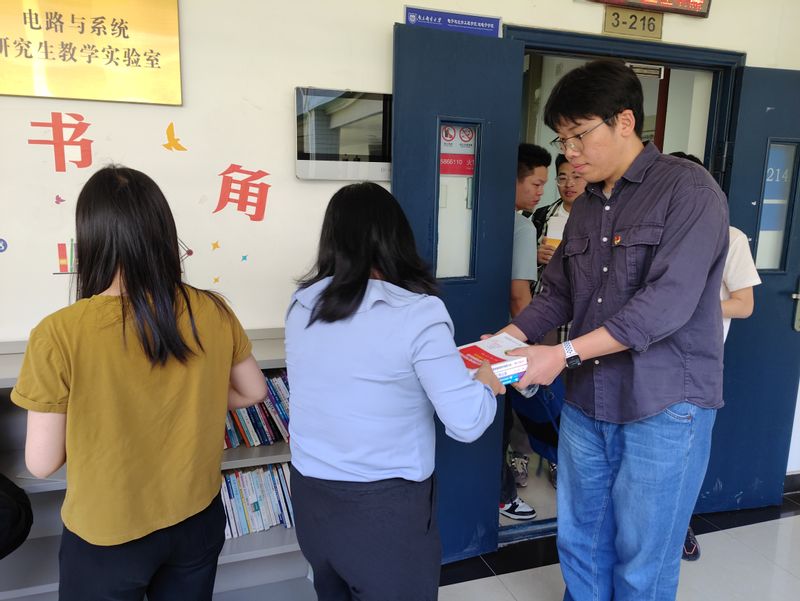 为了弘扬毕业生爱国爱校、回馈母校的情怀,促进新葡的京集团电工电子实验教学中心图书角文献资源的更新与充实,5月14日下午,电光柔学院本科2020级第一、二党支部,研究生2021级第一、二党支部与工程实验教学部第二党支部联合开展了“书香传情,邮缘相续——文明离校捐书图书角”主题党日活动。电光柔学院党委副书记、副院长徐磊,本科2020级辅导员刘振、江重九,研究生2021级辅导员郑景文,工实部第二党支部支部书记夏春琴、副书记顾艳丽及96名学生党员参加本次活动。