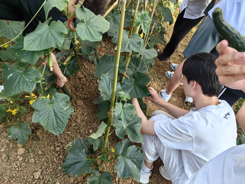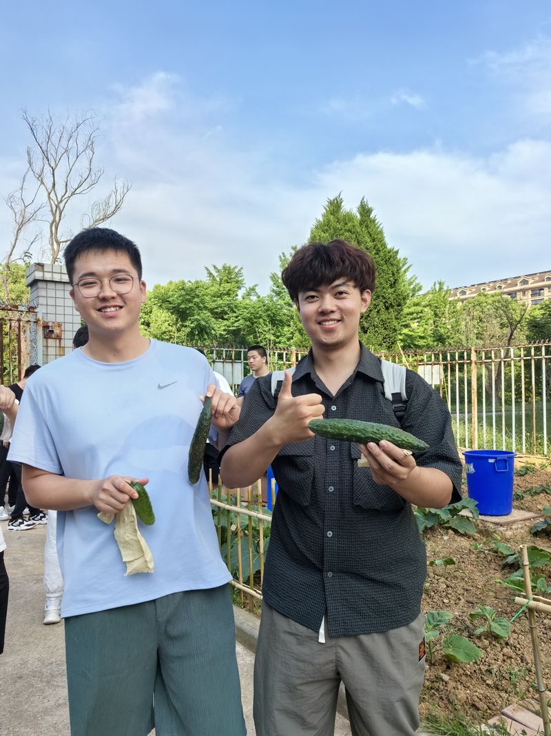 5月20日、5月22日下午,阳光明媚,天气凉爽。新葡的京集团8814师生们如期来到园圃处准备采摘成果。当时种下的黄瓜,青椒等,如今都已经成熟,新鲜翠绿的黄瓜挂满了藤蔓,熟透的青椒就是一盏盏点缀在其中的绿灯笼。同学们穿梭于其中,亲手摘下属于自己的劳动成果。现场氛围欢乐愉快,热情高涨,欢声笑语此起彼伏。经过翻土、育苗、种植、浇水、养护,如今迎来丰收,同学们亲身体会到了劳动的意义与乐趣。这片田地从发芽到结果,也象征着同学们在忙碌而又充实的学习生活中的辛勤努力点滴成长中会凝聚在一起成为一条走向美好未来的道路,也会迎来丰收的时刻。