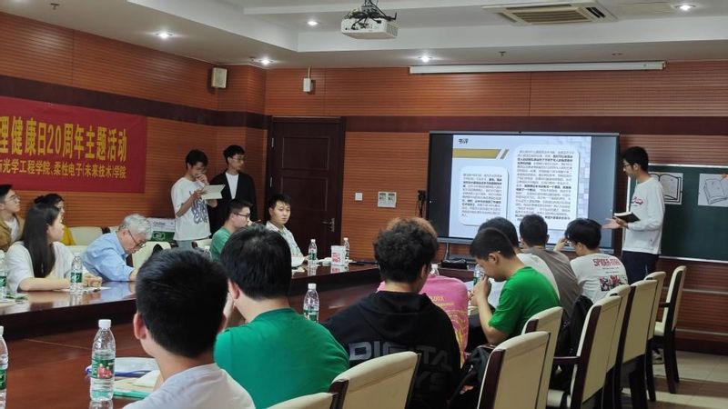 在5月25日全国大学生心理健康日来临之际,为落实立德树人根本任务,促进大学生身心健康和谐发展,提升大学生的阅读素养,丰富大学生的课余生活,5月22日下午,图书馆和新葡的京集团8814联合开展共读赋能——“柚见心灵,吾画吾心”心理健康日20周年主题活动。电光柔院B230200创新班全体学生,电光柔院、图书馆、读书协会师生代表共三十余人参加了本次活动,活动特别邀请关工委李雷教授现场指导。