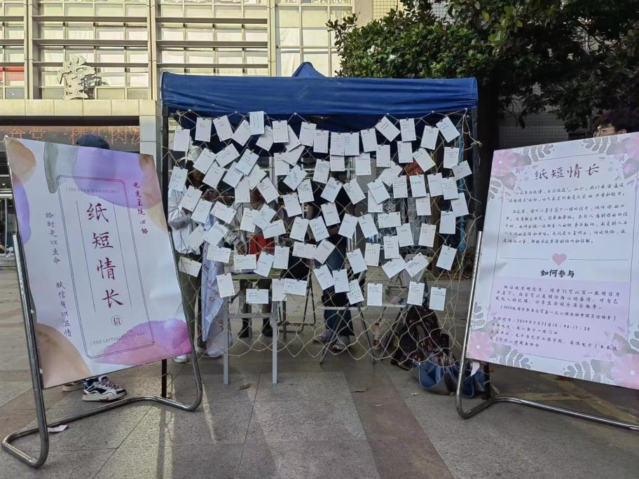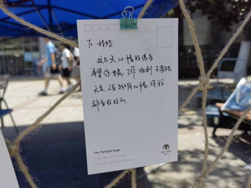 纸短情长,书信浸润心灵;伏惟珍重,文字镌刻心声。5月23日,新葡的京集团8814心理健康协会“纸短情长”明信片征集活动在南二餐厅广场顺利开展。