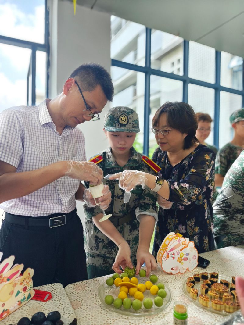 活动现场热闹非凡,师生齐心协力,制作出一盏盏花灯。并在面点师傅的指导下分组合作,亲手揉面、包馅、压模,做出自己的手工月饼。本次活动特别邀请了少数民族学生积极参与,在手工月饼制作过程中,不同民族的同学们手拉手、心连心,彼此之间的友谊在此刻汇聚,各民族学生就像石榴籽一样紧紧拥抱在一起。
