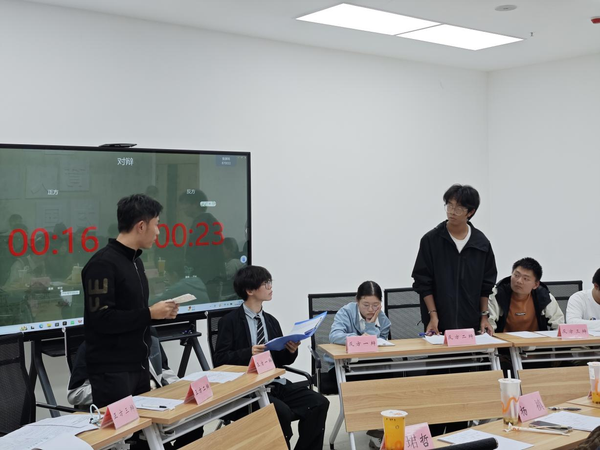 主题课程后,比赛正式拉开帷幕。现场座无虚席,选手们精神抖擞,观众们热情高涨。在辩论过程中,选手们不仅展现出了深厚的文化素养和敏锐的思辨能力,还体现出了良好的团队协作精神和出色的应变能力。他们的发言逻辑清晰、条理分明;他们的辩论你来我往、言辞犀利。辩论现场火花四溅,辩手们在辩论中不断碰撞思想、交流观点,这不仅锻炼了选手们的思辨能力,也激发了观众们的思考热情。