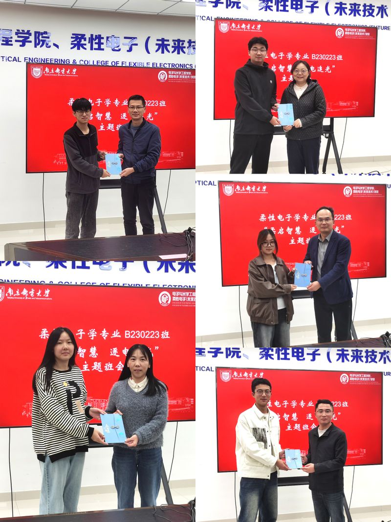 赵强副校长充分肯定了班级同学过去一年的成果,围绕专业前景、学业问题、未来职业规划等方面与同学们进行亲切交流。他表示,柔性电子学专业是响应国家号召设立的交叉学科专业,未来发展前景广阔。他向同学们传递了目前该专业领域科研学术成果、技术和信息,并鼓励同学们要积极拓展知识领域,树立专业自信,积极适应社会发展需求,并结合自身经历,向同学们提出四点希望。一是要坚定理想信念,厚植家国情怀,把个人命运与国家民族命运紧密相连,为实现中国梦而奋斗,勇担时代使命,在报效国家服务社会中实现个人价值最大化。二是要培养良好品德习惯,以积极心态和高效方法克服困难,在砥砺奋斗中提升自我修养,成为德才兼备、全面发展的新时代南邮人;三是要珍惜学习机会,积极追求深造,努力提升自己,为未来个人发展夯实基础,筑牢根基;四是要注重实践创新,积极投身科研竞赛,锻炼科研思维与实践能力,为社会发展贡献力量,推动科技创新。
