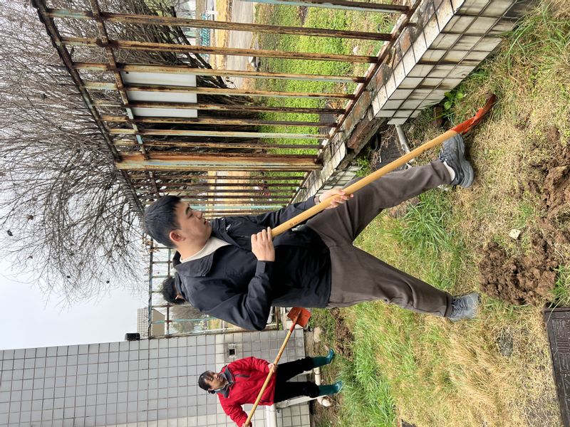 在学院党委副书记、副院长徐磊的统筹指导下,2024级本科生辅导员团队与宿舍管理员精心组织,五十余名师生积极参与。活动现场呈现出一派热火朝天的劳动景象。师生们分工明确,配合默契:有的挥锹挖土,有的扶苗栽种,有的浇水施肥,还有的负责培土固根。经过三个中午的辛勤劳动,近百株蔷薇花苗在宿舍区安家落户,为校园增添了一道亮丽的风景线。